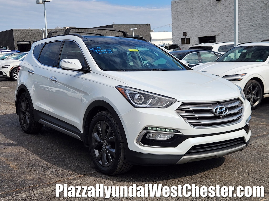 This 2018 Hyundai Santa Fe Sport 2.0T Ultimate is the perfect blend of sophisticated style and turbocharged performance, finished in a stunning Pearl White that gleams from every angle. With 79,000 miles, this versatile SUV remains a standout choice for those who refuse to compromise on luxury or power. Under the hood, the spirited 2.0L turbocharged engine delivers effortless acceleration, while the Ultimate trim treats you to a premium cabin loaded with high-end features like a panoramic sunroof, ventilated leather seating, and advanced safety tech. Whether you're navigating tight city streets or heading out for a weekend getaway, this Santa Fe Sport offers a refined, confident ride that looks as good as it feels.